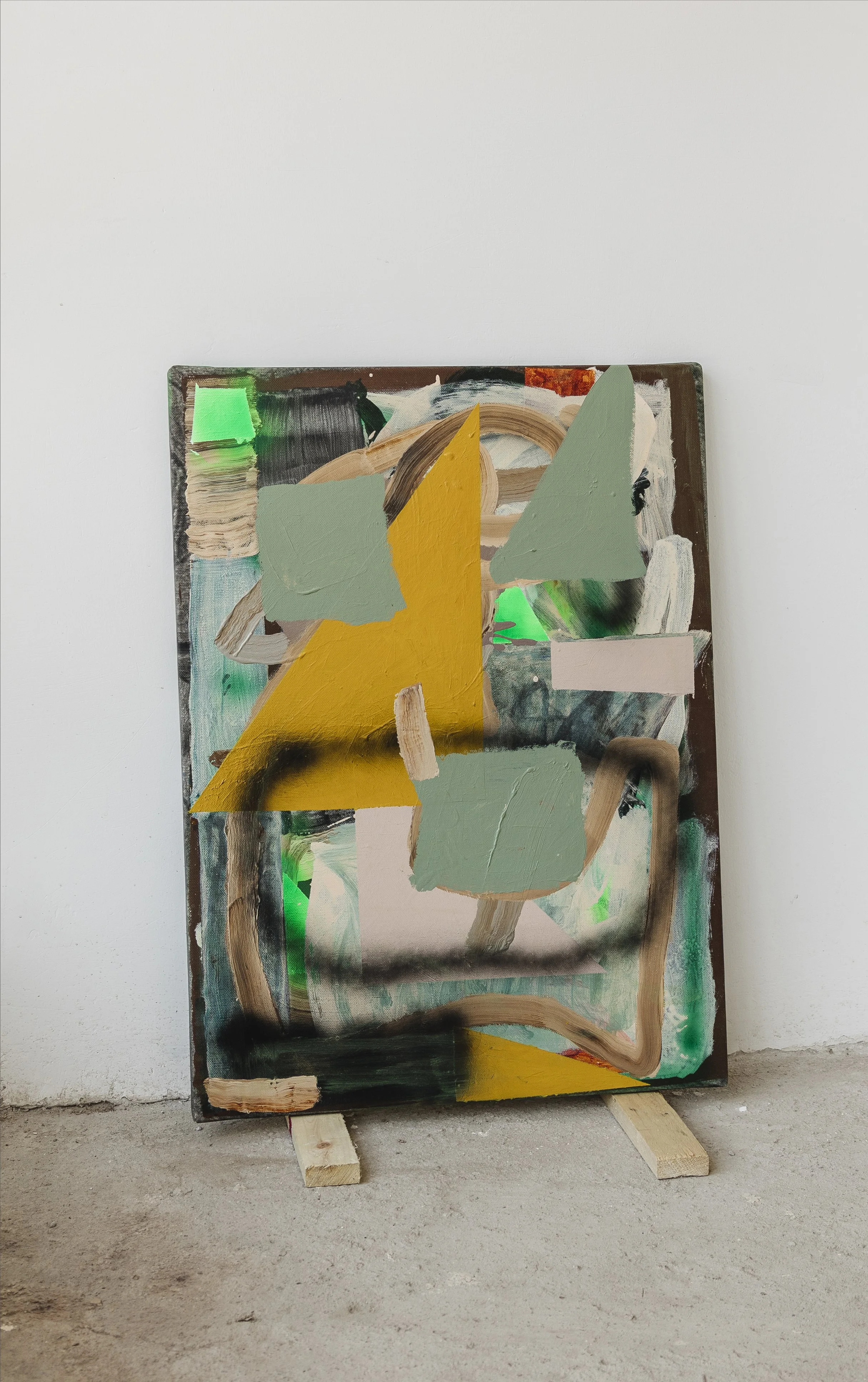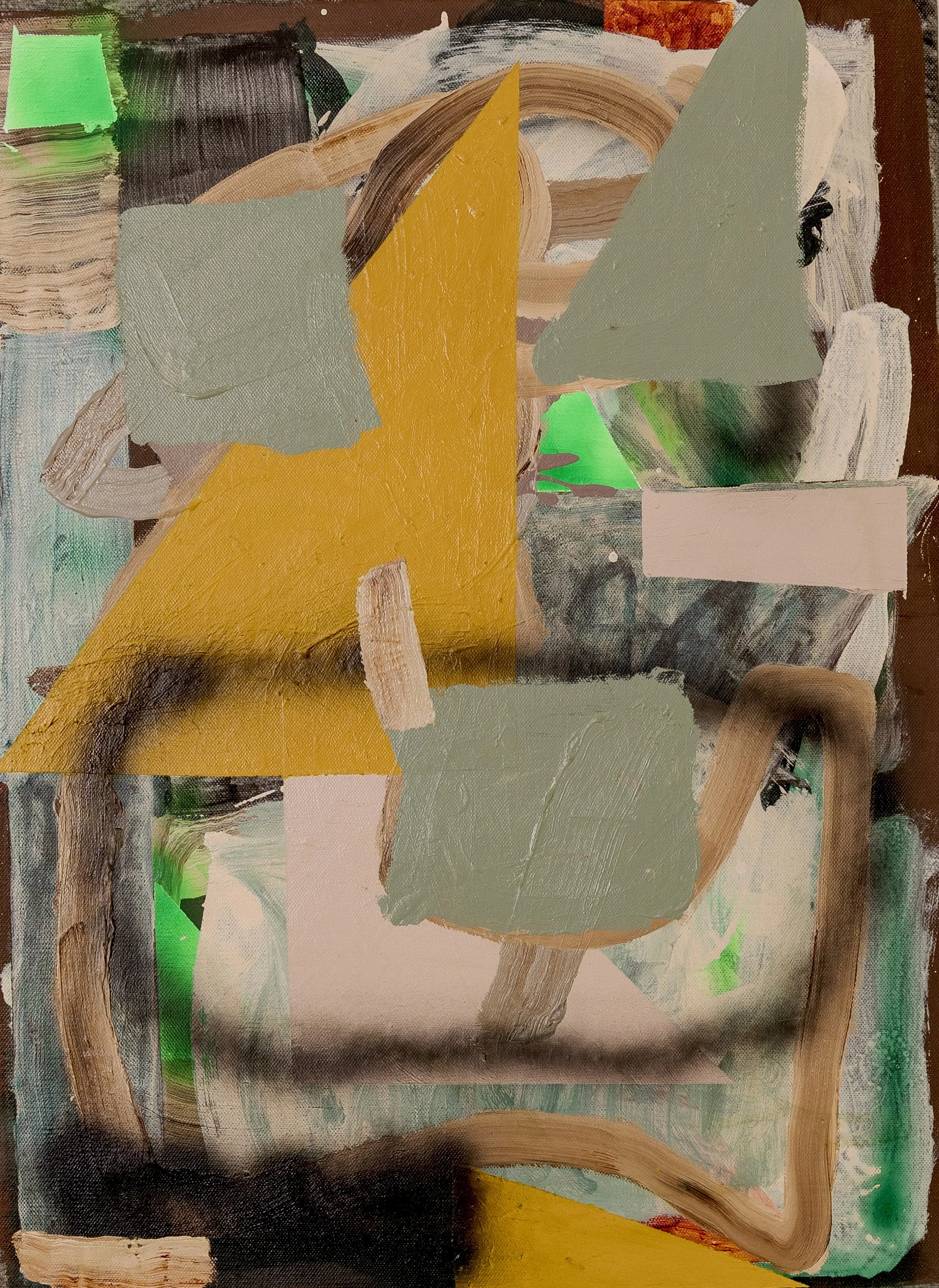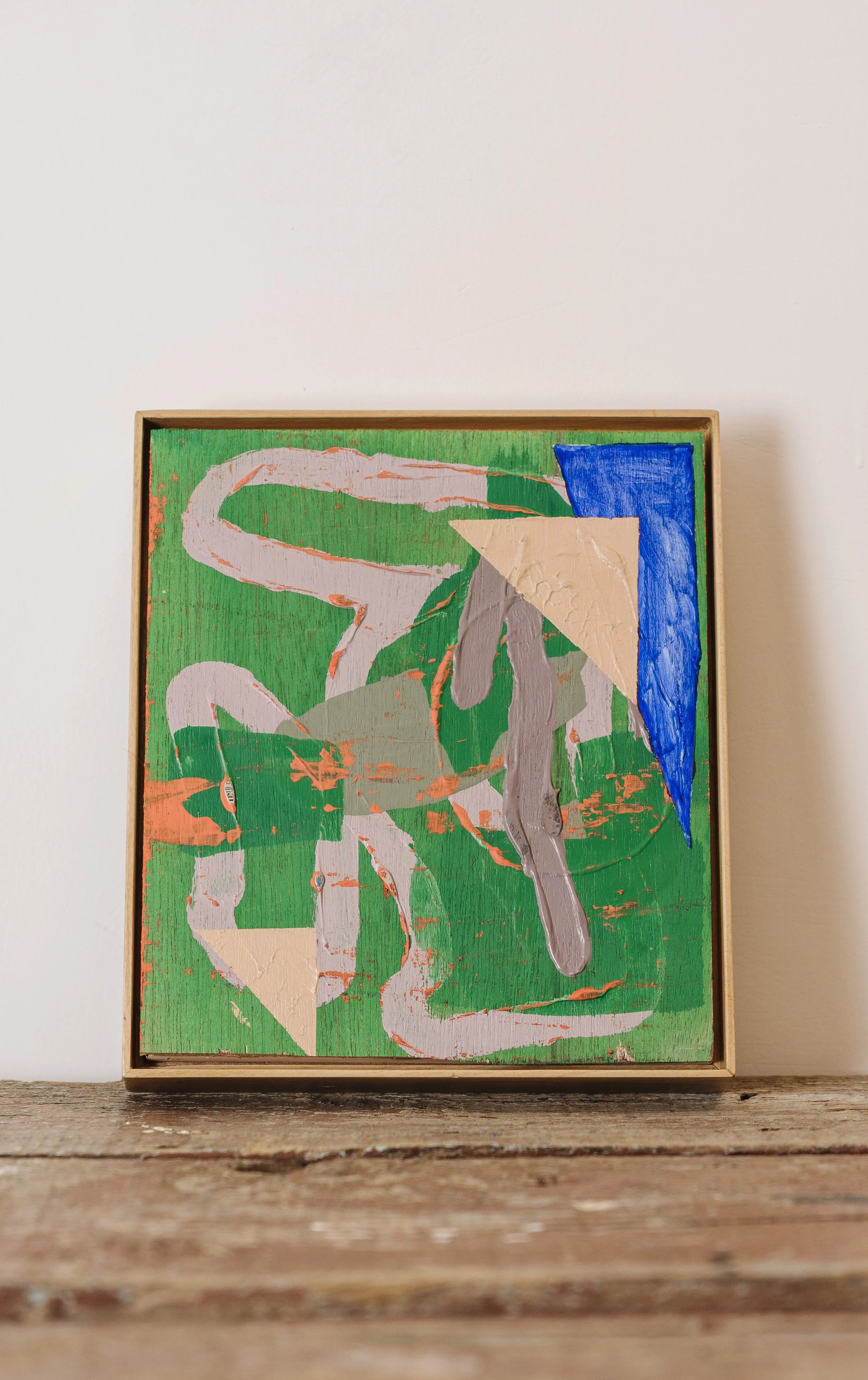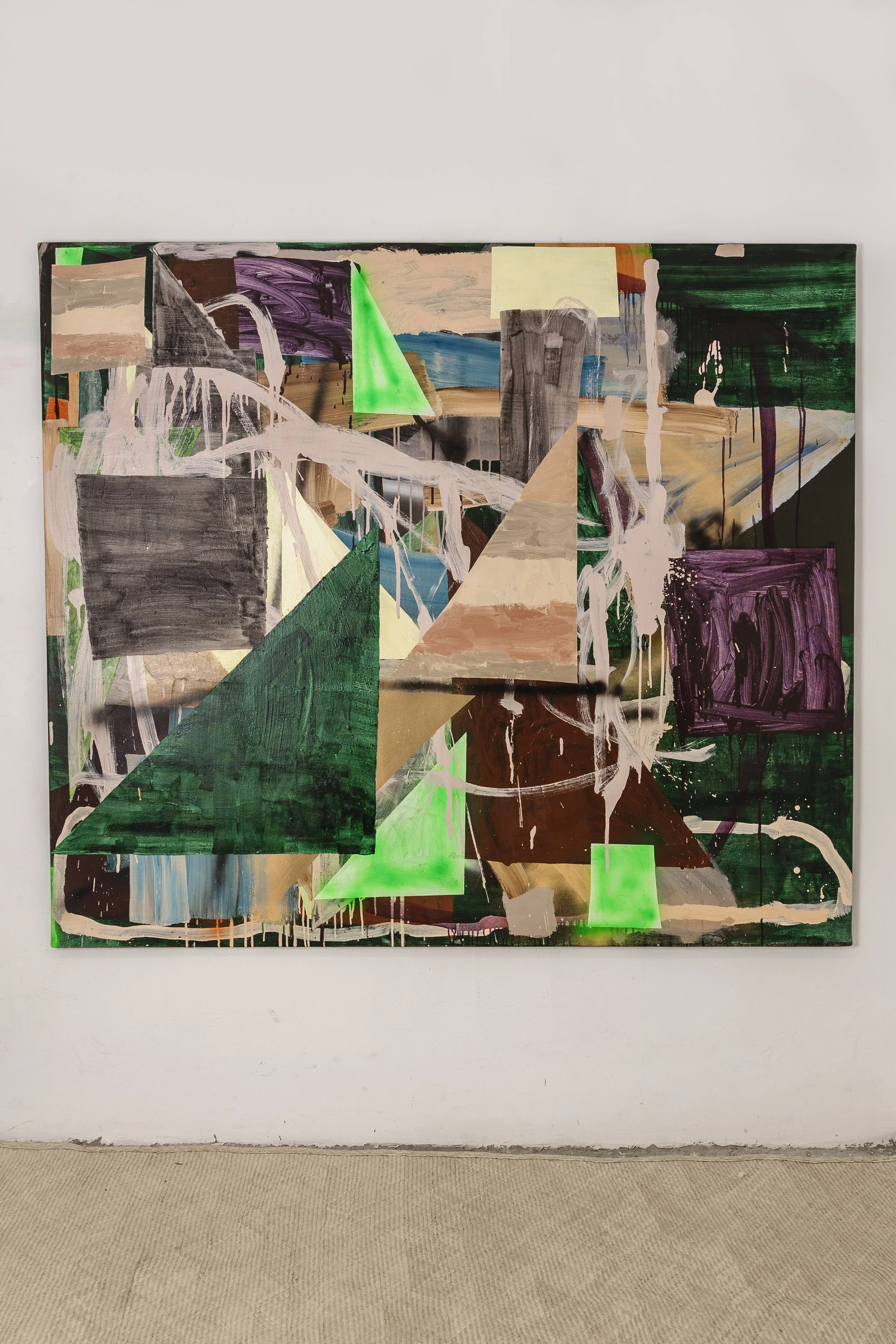 CIRCULAR is a new body of work that digs into familiar notions of abstraction – kinetic, playful, awkward spaces, almost-colours and tangled layers. Abstraction is a cycle within a cycle. In production, the image meets the eye, which sends the hand to update the image. In completion, it is a set of ideas that have been thought before, derived through history and pressed anew onto the canvas. Abstraction keeps turning away from you, un-attainable. A painting practice feeds on itself, gathering momentum, borrowing from here and there, constructing, then failing and then building again. The machine requires tending, and stoking, like a mini circular economy. The paintings are the remnant of this shambolic making. Ellinger’s work is a homage to abstraction and its potential to renew and truthfully reflect human experiences.