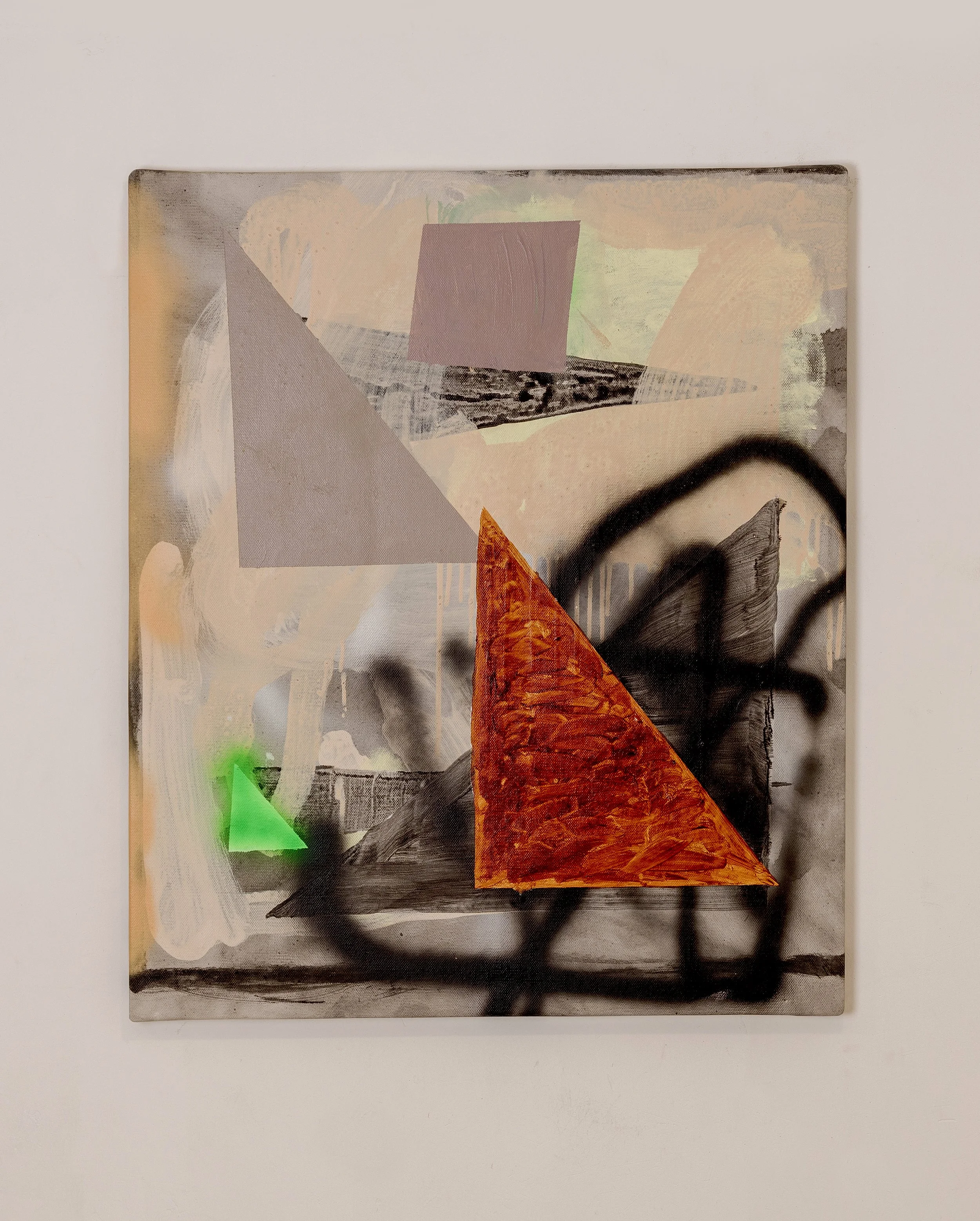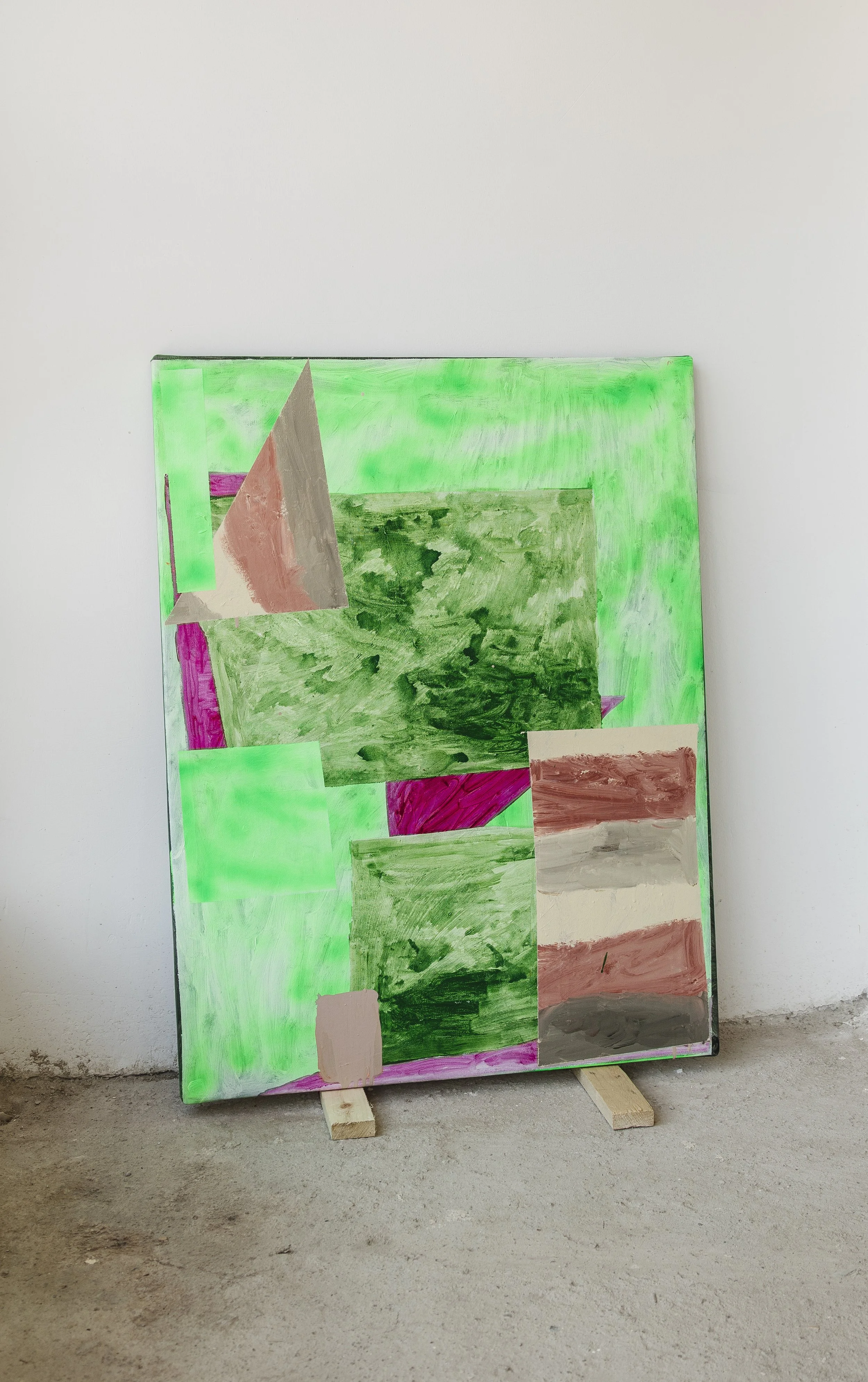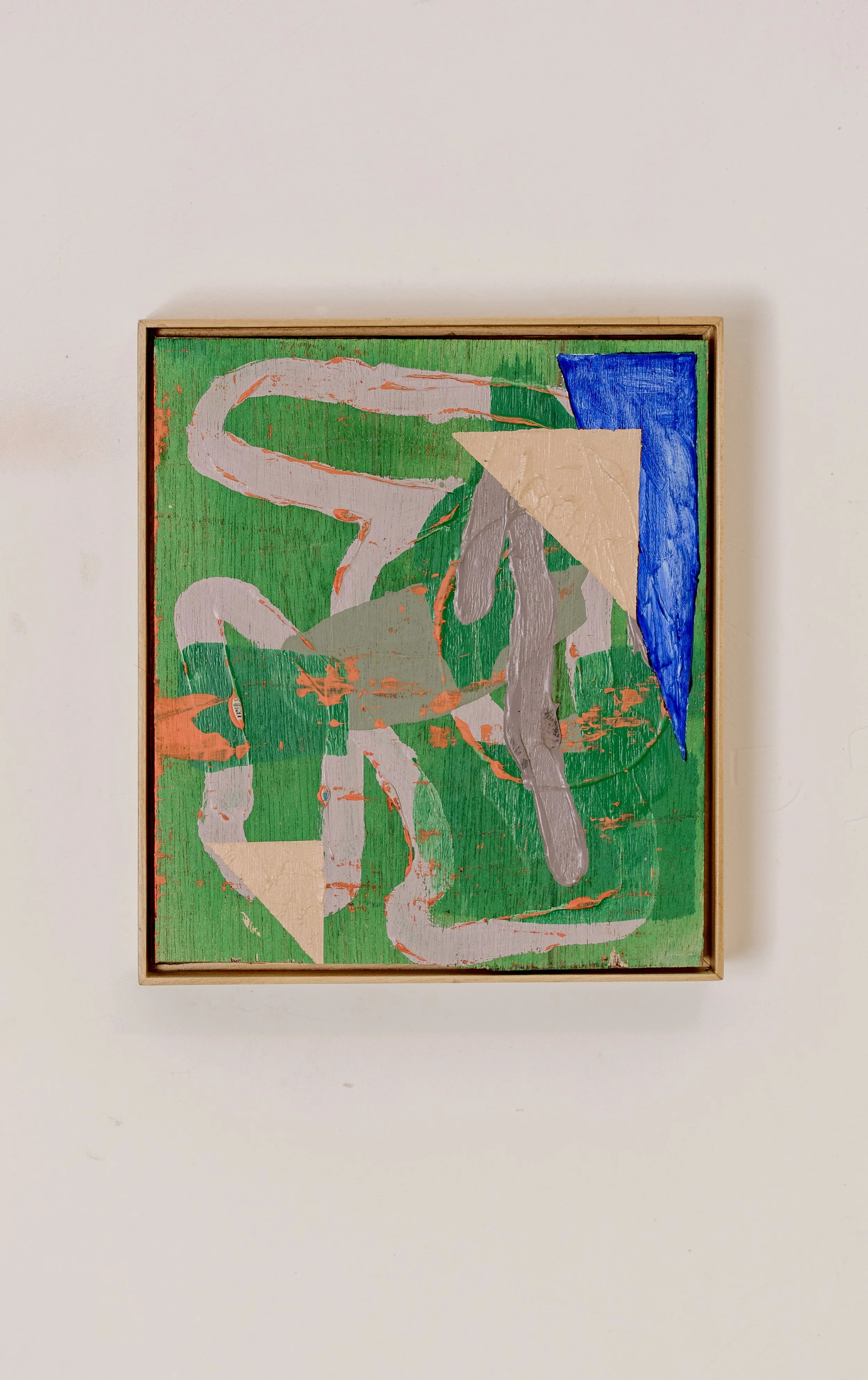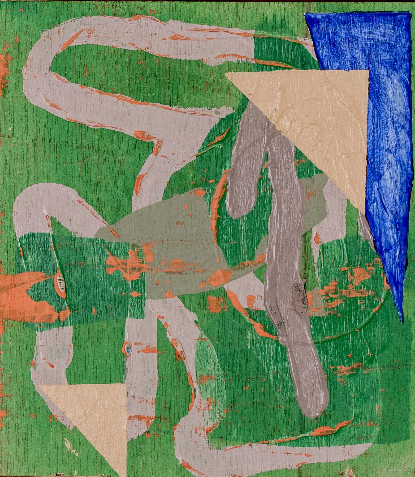 CIRCULAR is a new body of work that digs into familiar notions of abstraction – kinetic, playful, awkward spaces, almost-colours and tangled layers. Abstraction is a cycle within a cycle. In production, the image meets the eye, which sends the hand to update the image. In completion, it is a set of ideas that have been thought before, derived through history and pressed anew onto the canvas. Abstraction keeps turning away from you, un-attainable. A painting practice feeds on itself, gathering momentum, borrowing from here and there, constructing, then failing and then building again. The machine requires tending, and stoking, like a mini circular economy. The paintings are the remnant of this shambolic making. Ellinger’s work is a homage to abstraction and its potential to renew and truthfully reflect human experiences.