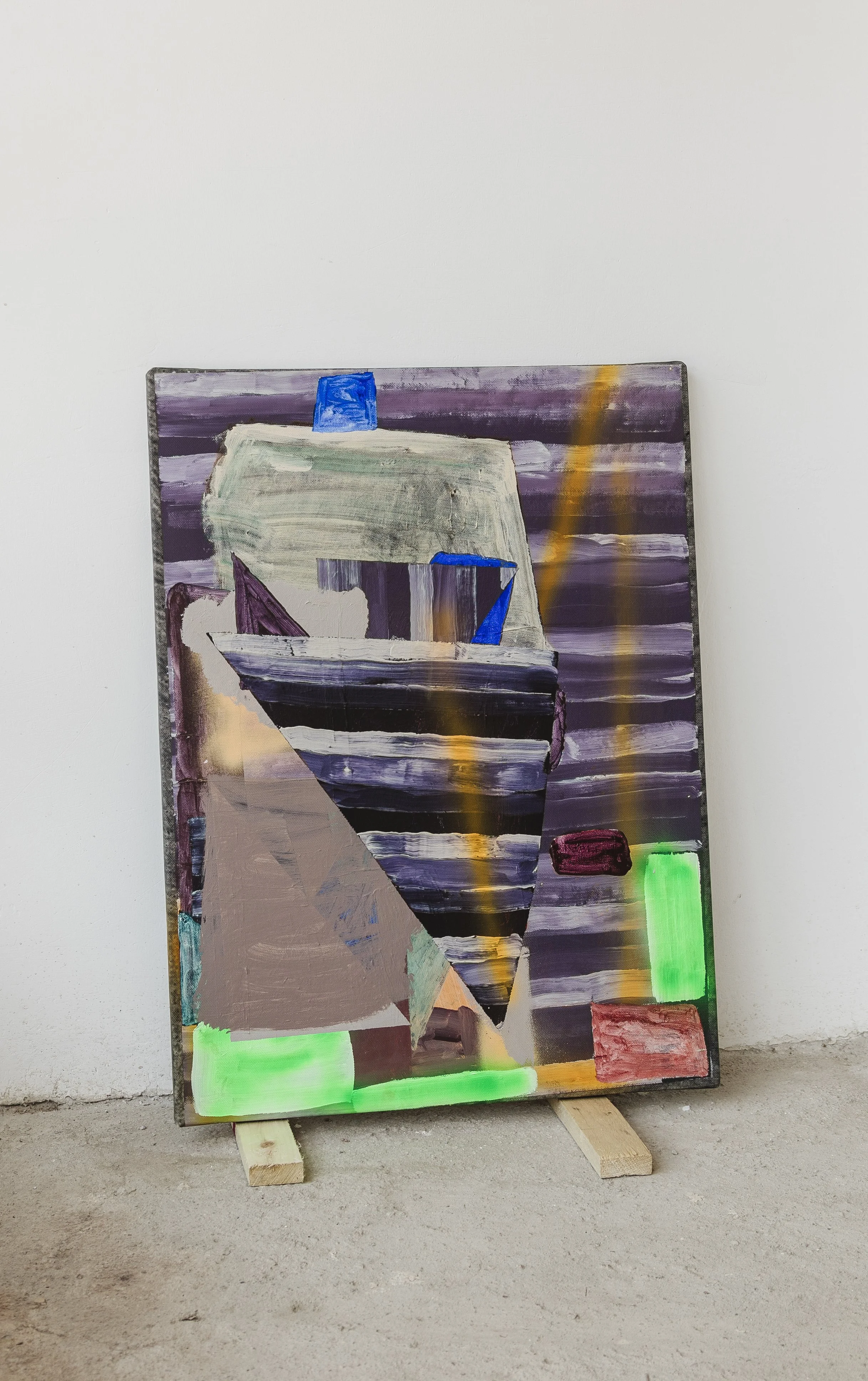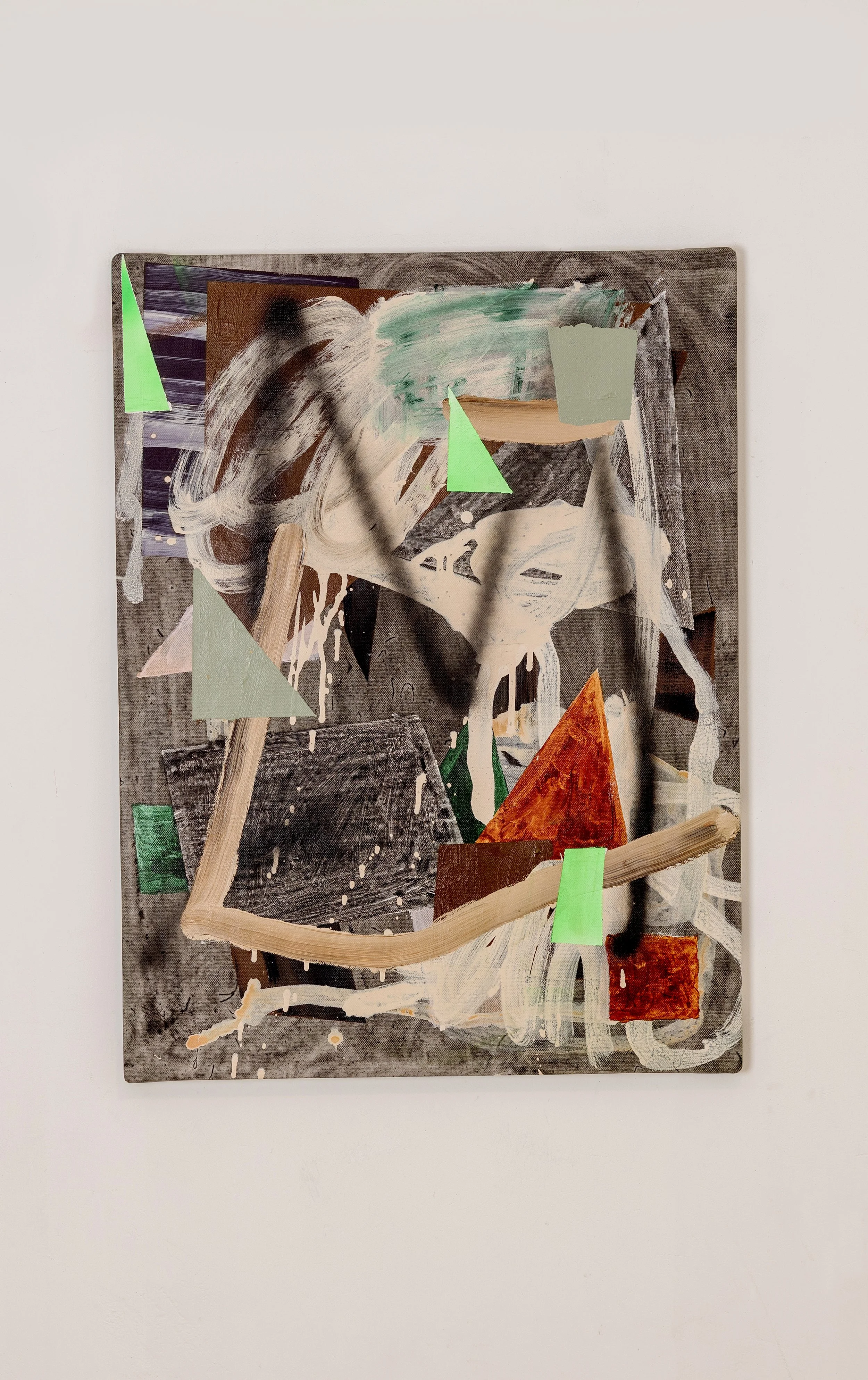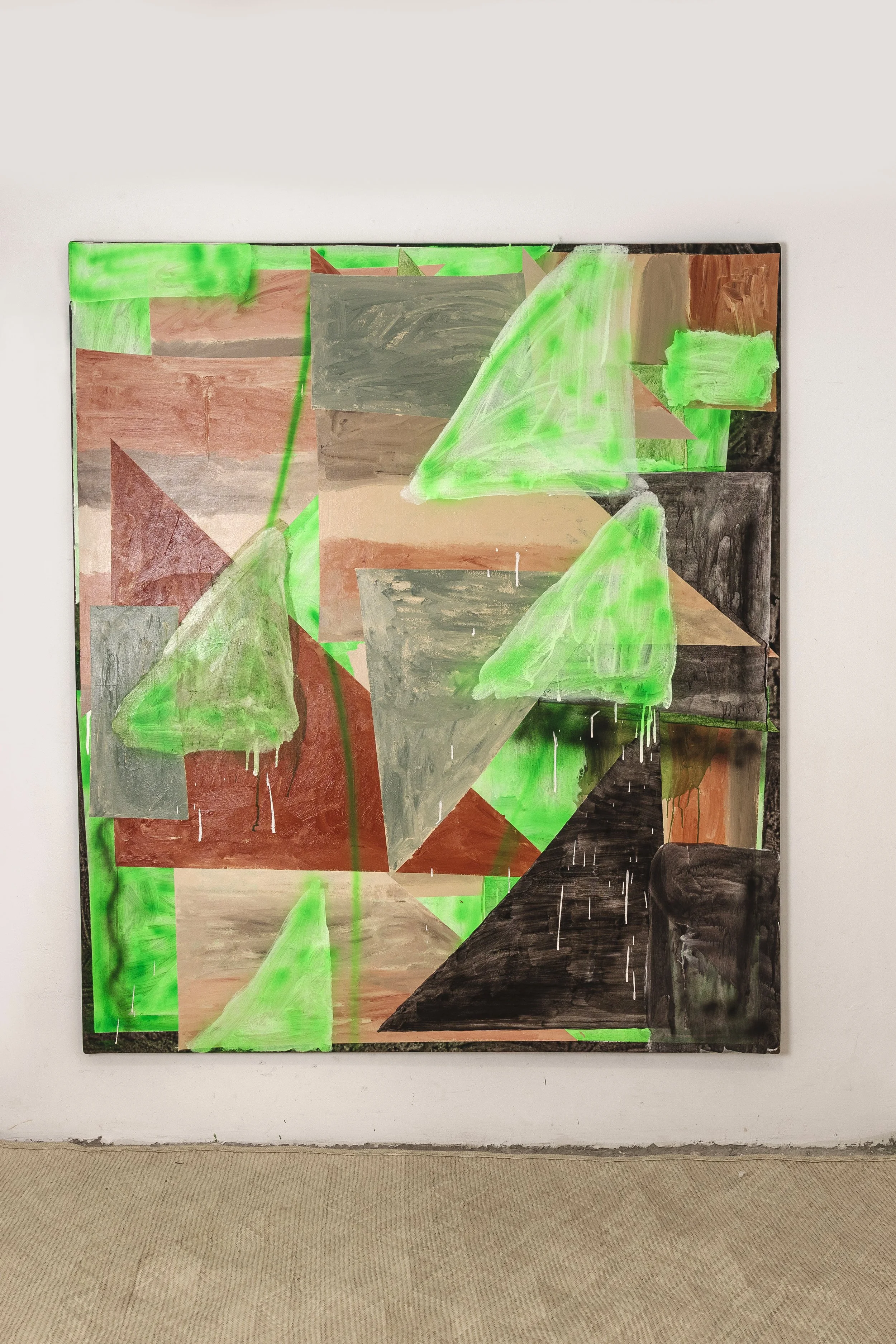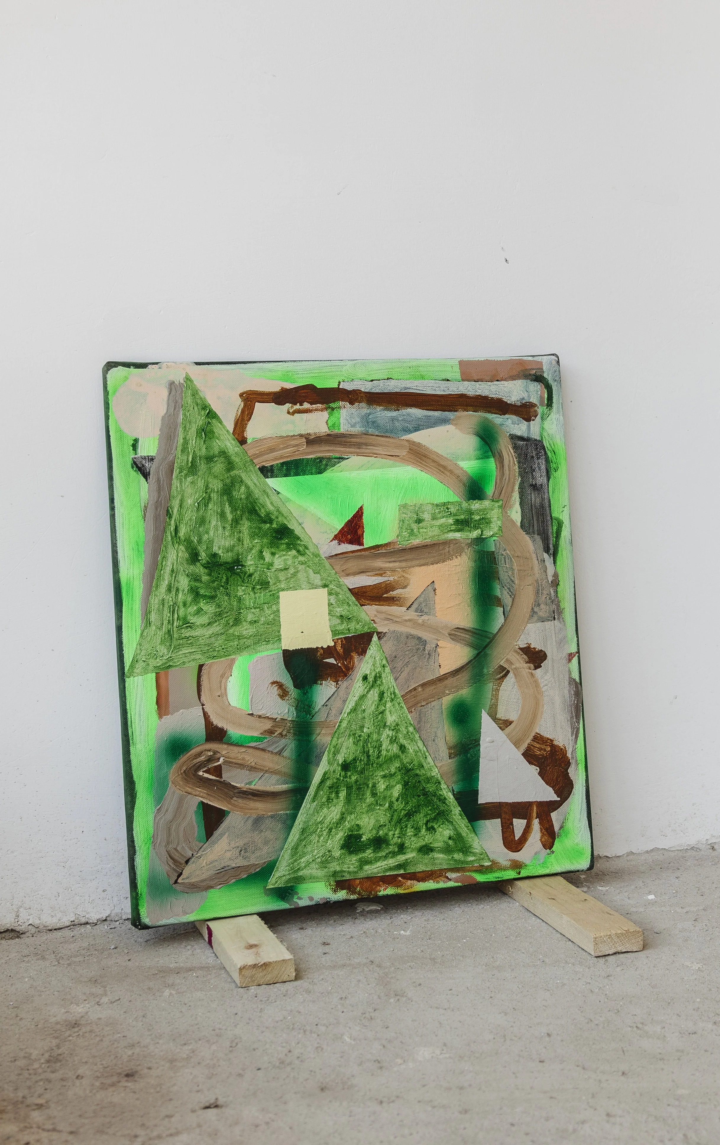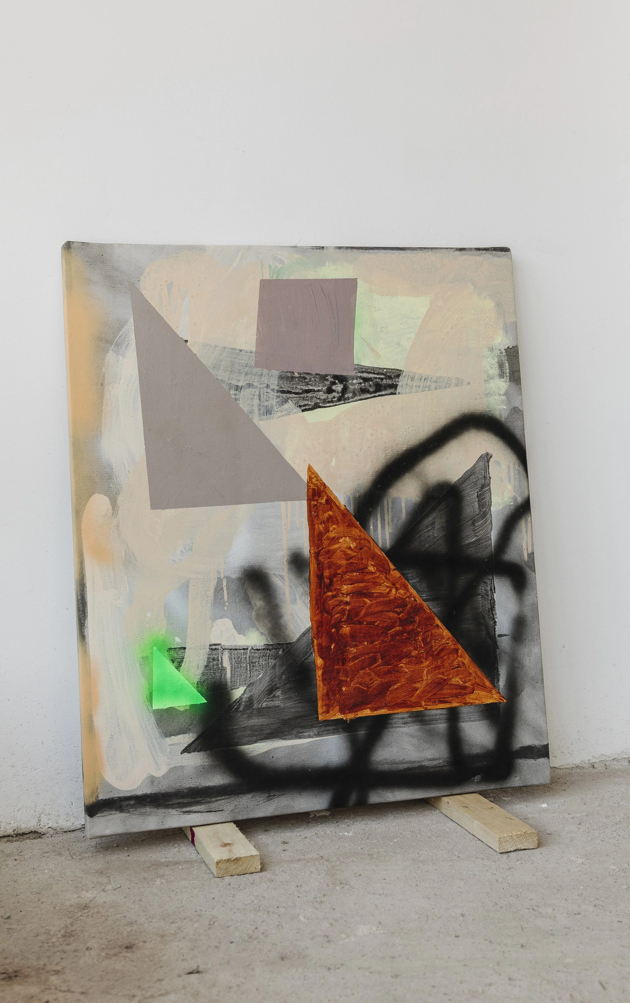 CIRCULAR is a new body of work that digs into familiar notions of abstraction – kinetic, playful, awkward spaces, almost-colours and tangled layers. Abstraction is a cycle within a cycle. In production, the image meets the eye, which sends the hand to update the image. In completion, it is a set of ideas that have been thought before, derived through history and pressed anew onto the canvas. Abstraction keeps turning away from you, un-attainable. A painting practice feeds on itself, gathering momentum, borrowing from here and there, constructing, then failing and then building again. The machine requires tending, and stoking, like a mini circular economy. The paintings are the remnant of this shambolic making. Ellinger’s work is a homage to abstraction and its potential to renew and truthfully reflect human experiences.
