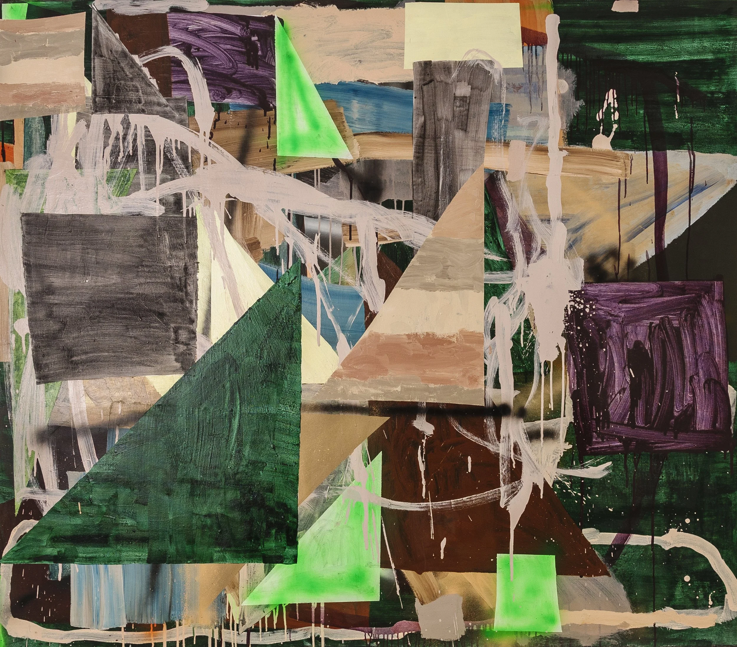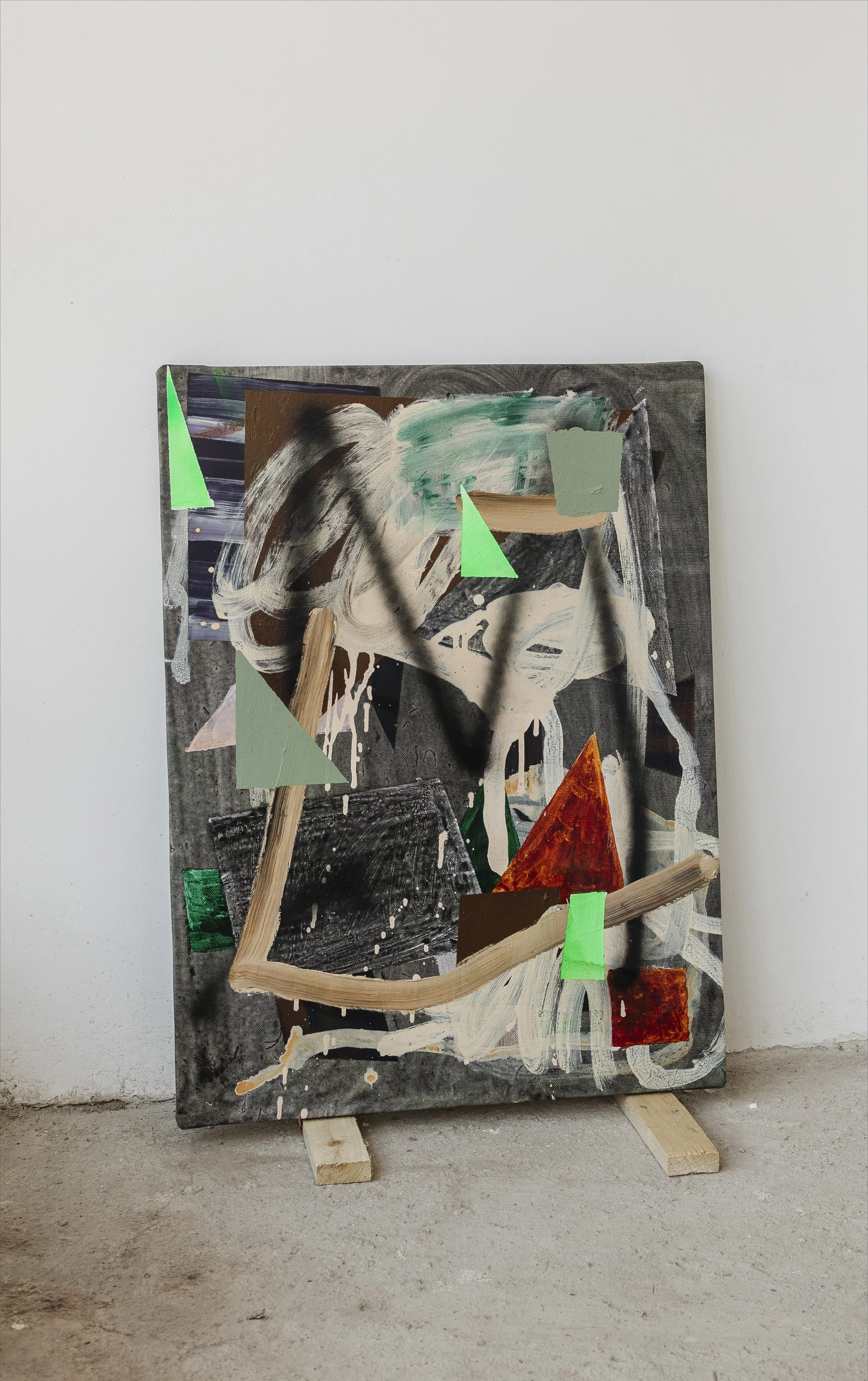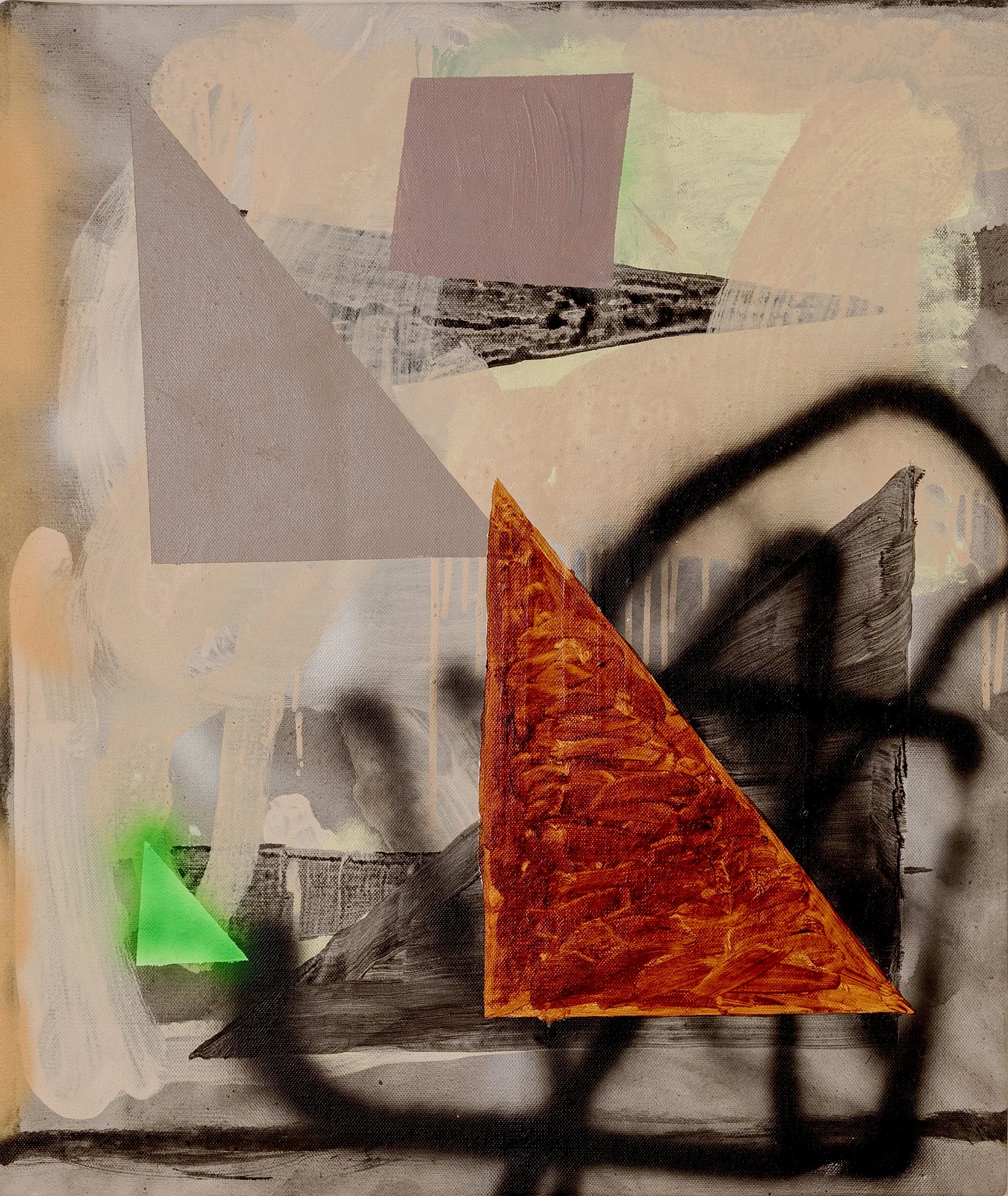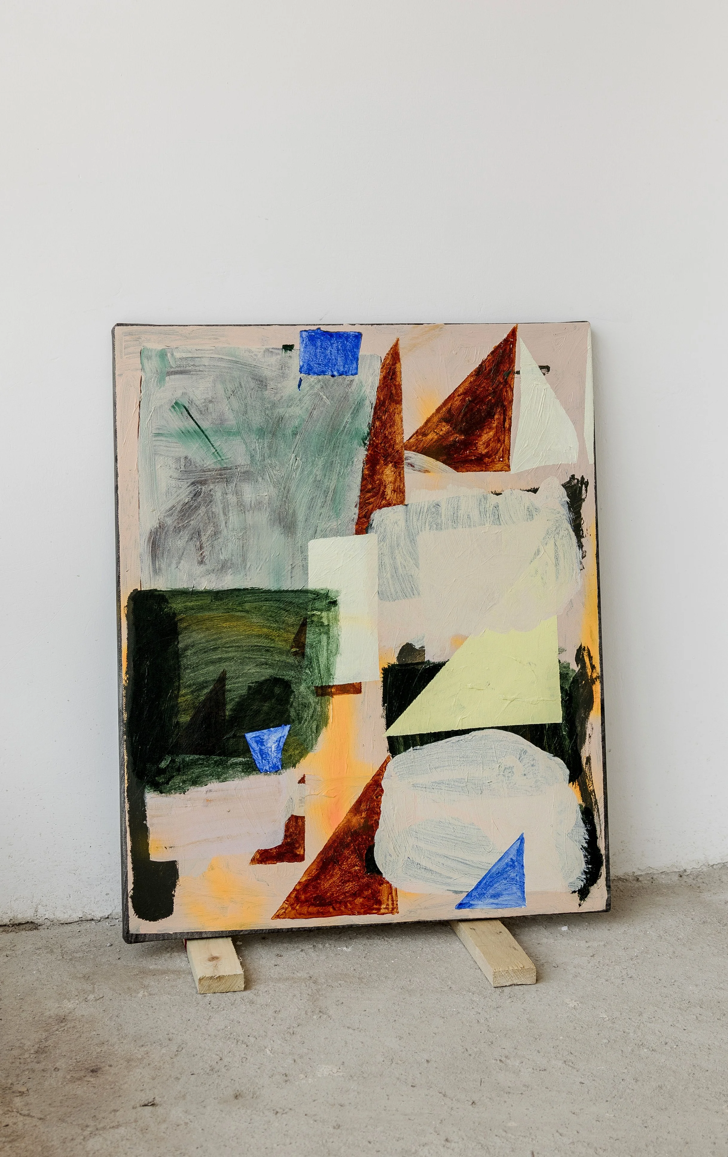 CIRCULAR is a new body of work that digs into familiar notions of abstraction – kinetic, playful, awkward spaces, almost-colours and tangled layers. Abstraction is a cycle within a cycle. In production, the image meets the eye, which sends the hand to update the image. In completion, it is a set of ideas that have been thought before, derived through history and pressed anew onto the canvas. Abstraction keeps turning away from you, un-attainable. A painting practice feeds on itself, gathering momentum, borrowing from here and there, constructing, then failing and then building again. The machine requires tending, and stoking, like a mini circular economy. The paintings are the remnant of this shambolic making. Ellinger’s work is a homage to abstraction and its potential to renew and truthfully reflect human experiences.